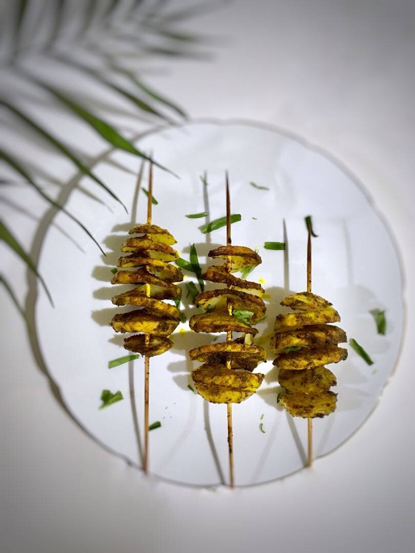 Запеченная картошка-гармошка - это довольно сытное блюдо, которым вы можете удивить своих родных и гостей. Картофель выглядит празднично И аппетитно! Ингредиенты: раст.масло, сванская соль, куркума, сушеный чеснок, алеппо перец, сушёный укроп, средних картофелин, деревянные шпажки Способ приготовления: Картошку промыть, почистить. Нанизать каждый на деревянную шпажку. И круговыми движениями разрезать гармошкой. Далее аккуратно растянуть спираль. В масле перемешать все специи и кисточкой замазать картошки. Противень смазать маслом, выкладывать шпажки и отправить в разогретую до 200с духовку на 30 минут или до золотистости и готовности картошки. Подать с любимым соусом. Приятного аппетита! 🤤