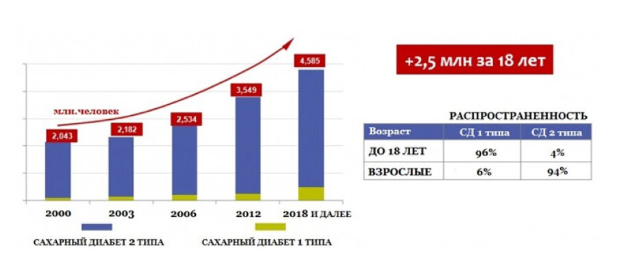 Сахарный диабет I типа 256 000 чел., 6% от общего количества больных.