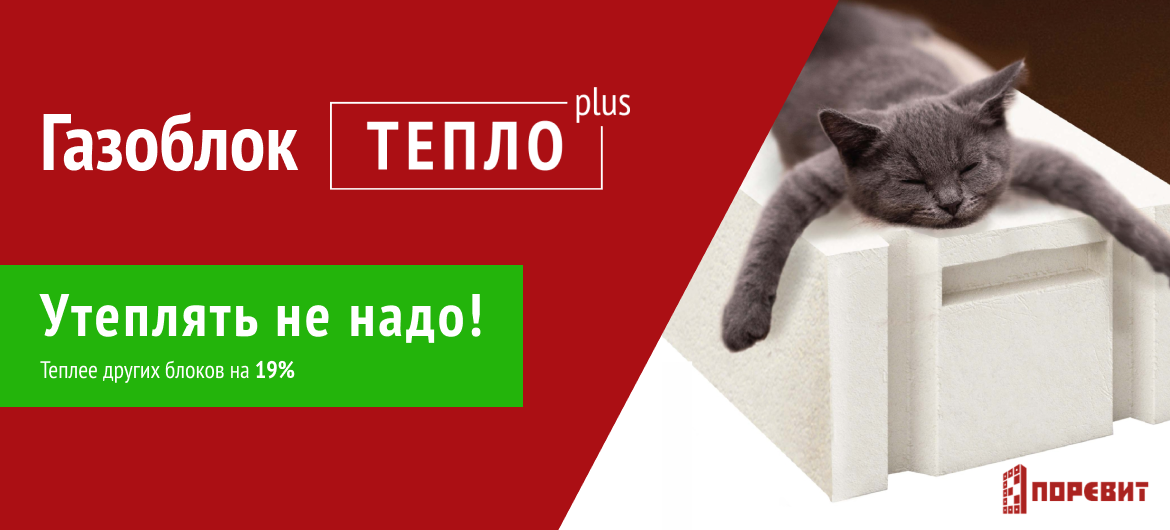 Завод «Поревит» запустил производство газобетонных блоков БП-400 с плотностью D400. Что это значит? Благодаря своей структуре, блоки БП-400 «Тепло+» обладают коэффициентом теплопроводности 0,096, что делает стены ещё теплее. Стена толщиной 400 проходит по всем теплотехническим нормам. Дома из новых газобетонных блоков «Поревит» не требуют дополнительного утепления. Все эти качества позволяют вам экономить на утеплителе, продолжающем дорожать, и отоплении. Однородная однослойная стена позволяет влаге свободно мигрировать, поэтому в доме из такого блока обеспечивается микроклимат деревянного дома. Это обеспечивает комфортное проживание для всей семьи. Кроме того, вес блоков БП-400 «Тепло+» меньше на 6,6 кг, чем у БП-400 с плотностью D500, при одинаковой марке прочности В2,5. Работать с блоком стало удобнее и быстрее, а значит ваш дом будет готов раньше. При выборе газобетонных блоков БП-400 «Тепло+» вы: Заказать газоблок БП-400 «Тепло+» или получить консультацию по строительным материал