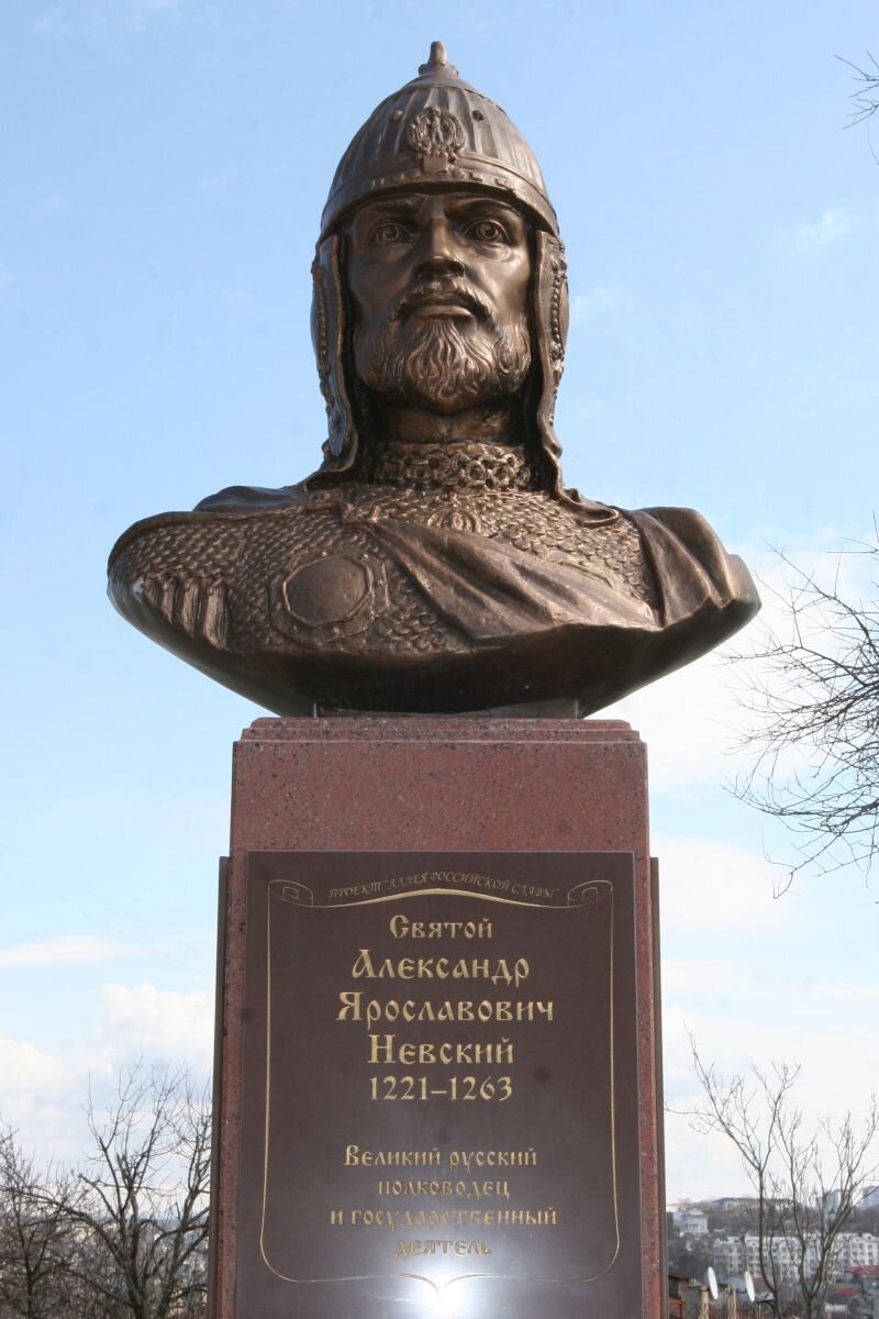 На том стоит и стоять будет русская земля. Александр Ярославич Невский (1220 — 14 ноября 1263), князь Новгородский, Переяславский, великий князь Киевский (с 1249), великий князь Владимирский (с 1252) Основные свои военные победы князь Александр одержал в молодости. Во время Невской битвы (1240 год) ему было от силы 20 лет, во время Ледового побоища — 22 года. Впоследствии он прославился более как политик и дипломат, однако периодически выступал и как военачальник. За всю свою жизнь князь Александр не проиграл ни одного сражения. «Надо крепить оборону на Западе,