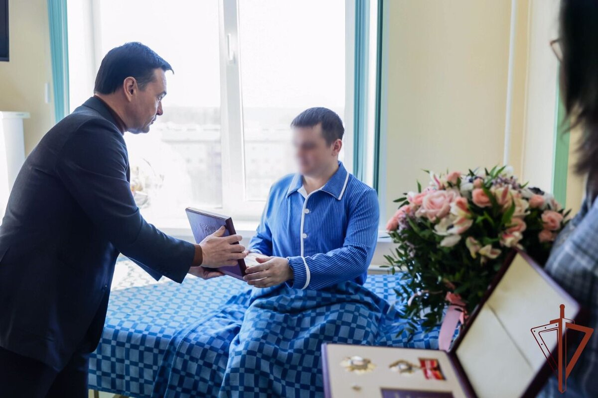 Губернатор Подмосковья Андрей Воробьев посетил Главный военный клинический госпиталь Росгвардии и встретился с военнослужащими и сотрудниками войск национальной гвардии Российской Федерации , которые находятся на излечении. Глава региона вручил росгвардейцам орден «За доблесть и мужество» и поблагодарил их за смелые и решительные действия, проявленные в ходе специальной военной операции по защите Луганской и Донецкой народных республик. Андрей Воробьев побеседовал с ранеными , пожелал им скорейшего выздоровления, выразил свою поддержку и благодарность. Справочно. Орденом «За доблесть и мужество» награждаются лица за смелые и решительные действия, совершенные на территории Московской области при выполнении воинского, гражданского, служебного долга, а также при спасении людей во время стихийных бедствий, пожаров, катастроф и других чрезвычайных ситуаций.