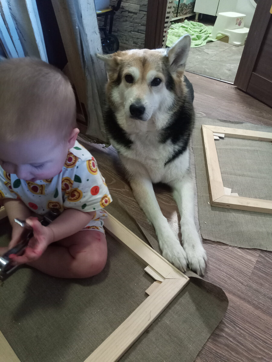 Всем привет, с вами художник Анастасия Дагаева. В этой статье я кратко расскажу, как натягивать холст на подрамник. Эти простые советы подойдут для новичков и также для профессионалов, кто хочет освежить в памяти знания по технологии живописи. Сегодня мне помогает сын Миша и наша собака Муся)🤗🐕 Я покупаю обычно отрез льняного холста средней зернистости, обычно 1-2 метра. Ширина холста бывает и 1,7- 2м, так что этого отреза холста хватает на несколько подрамников. В идеале купить сразу много холста где-то с оптового склада или в интернет магазине со скидкой. Статьи про подрамники и выбор материала холста обязательно напишу, это тоже важные темы. Холст перед работой рекомендуется постирать и высушить, погладить утюгом, он немного сядет, это нормально. Но я этого не делаю, наверно мне жалко что холст может сесть и его станет меньше. 🤭 Если холст мятый, обязательно его надо разгладить утюгом или хотя бы сполоснуть в воде и просушить в расправленном виде, чтобы потом хорошо натянуть