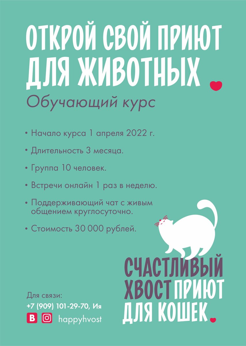 Многие из нас любят животных, и многие хотят им помогать, только не знают как. Мы готовы вас научить и пройти этот путь вместе! Курс подойдет для тех, у кого есть пока только мечта. Для тех, у кого есть приют, но он утопает в долгах и не знает чем кормить животных. Для тех, кто хочет “прокачать” приют и вывести его на самоокупаемость. Да, классный приют - это реально! Главное поддержка, команда и опытный наставник. Открой приют в своем городе!