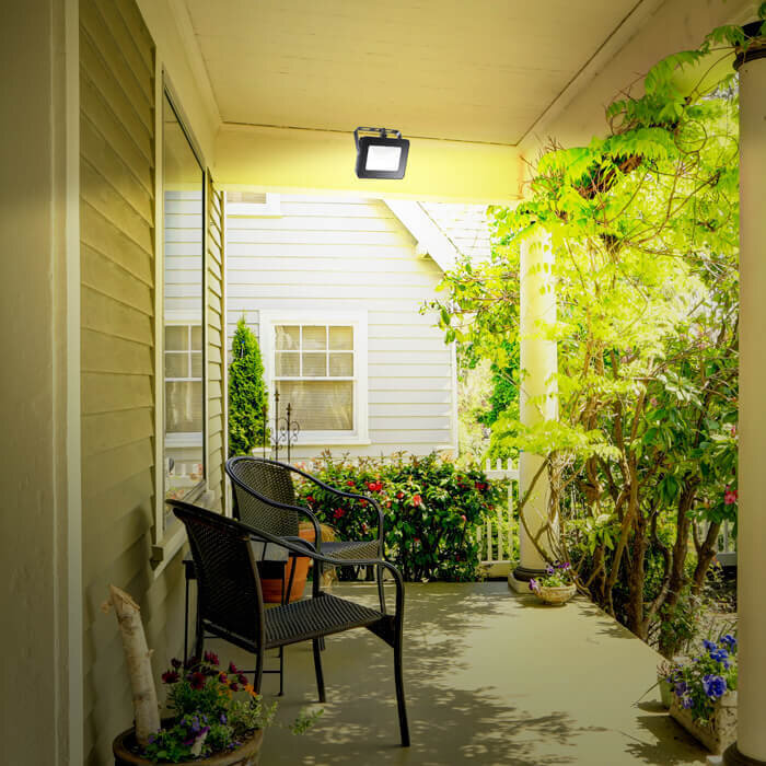 Для гаража и хозяйственных построек лучше всего подойдет яркий направленный свет. Обеспечить его могут прожекторы. Очень удобны светильники с датчиками движения, которые включаются автоматически, если в радиусе их действия оказывается движущийся объект.