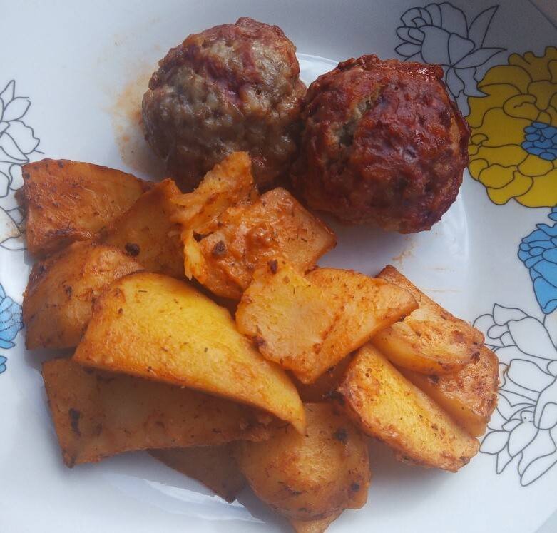 Ломтики картофеля по этому рецепту получаются нежными. Имеют пряный вкус и аромат). #меню Ингредиенты: картофеля, ст воды, ч.л паприки молотой, ч.л куркумы молотой, ч.л чеснока сушенного, ч.л горчицы, Соль, перец по вкусу, ст.л томатной пасты, ст.л сметаны, Укроп Способ приготовления: Картофель очищаем и нарезаем дольками. Выкладываем на противень смазанный маслом. Соеденяем специи, соль, перец. Добавляем сметану, пасту и воду, замешиваем соус. Залеваем соусом картофель, перемешиваем. Добавляем укроп, перемешиваем. Готовим при 200 градусах минут 30,35(смотрите по готовности).