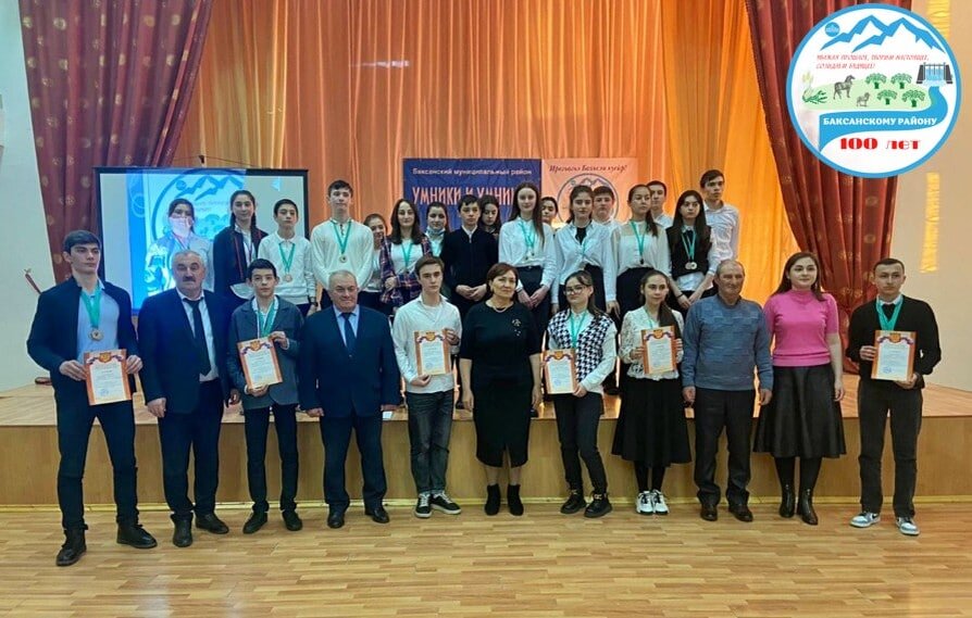 В рамках утверждённого плана мероприятий к 100-летию образования Баксанского района, в четвертой школе Исламея состоялась интеллектуальная игра «Умники и умницы». В игре принимали участие более 30 учащихся образовательных учреждений района, которые должны были продемонстрировать знания об истории района, географическом положении, населенных пунктах, героях и просветителях, периоде в годы Великой Отечественной войны. В состав профессионального жюри вошли известные деятели и работники учреждений Баксанского района: председатель общественной палаты района Олег Каздохов, директор музыкальной школы искусств села Заюково Арсен Жиляев, председатель совета ветеранов с.п. Баксаненок Абдул Нагоев, учитель ОБЖ и технологии четвертой школы Исламея Аслан Бештоков. Отвечая на вопросы, ее участникам предстояло проявить свою эрудицию и логическое мышление, умение принимать решения в нестандартной ситуации в условиях ограниченного количества времени. «Учащиеся во время ответов на вопросы продемонстриро