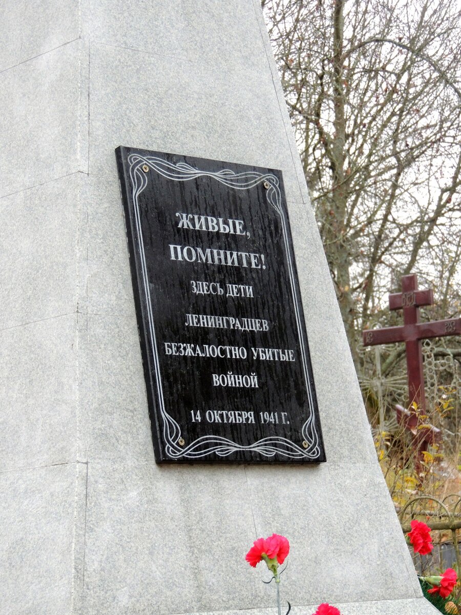 Старое тихвинское кладбище обступило эту могилу со всех сторон - как будто спрятало подальше от праздных глаз. Невысокая серая стела под развесистой березой, лаконичная черная табличка: "Живые, помните! Здесь дети ленинградцев, безжалостно убитые войной 14 октября 1941 г."