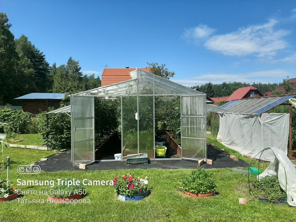 Первый сезон эксплуатации новой теплицы показал, что идея с максимальным количеством окон и верхних форточек полностью себя оправдала. Хорошее проветривание не давало накапливаться лишней сырости в непогоду. В закрытом виде в ней было достаточно тепло и комфортно. Полностью открытая в жару она отлично вентилируется. И когда пришло время строительства второй, мы решили повторить эту технологию. Только вторую теплицу решено было делать маленькую. А так же сделать новые отдельные грядочки. Осенью приступили к ликвидации нашей старой теплицы и уличных грядок. При очищении площадки под строительство, хороший плодородный грунт с грядок складывали в кучу. Он понадобится для наполнения новых гряд-коробов. Выровняли площадку песком, сделали разметку. Застелили геотекстиль и Алексей приступил к монтажу каркаса теплицы. Новая тепличка будет небольшая, как половинка от большой - 6м в длину и 2 м в ширину. Работа продвигалась быстро, не смотря на то, муж мог этим заниматься только в свои вых