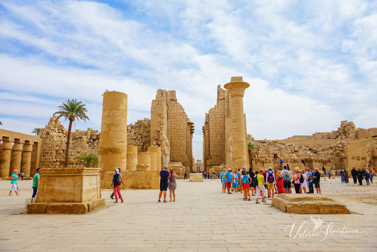 Карнак — потрясающее место. Крупнейший храмовый комплекс Древнего Египта посвящён верховному богу Солнца Амону-Ра, его супруге Мут и сыну Хонсу. Археологи считают, что всего строительство храма заняло у древних египтян около 1300 лет. Два столетия назад комплекс полностью засыпало песком. Раскопки, начавшиеся в XIX веке, продолжаются по сей день. 📍 Расположен Карнакский храм на территории древних Фив на восточном берегу Нила недалеко от Луксора. Добраться сюда удобнее из Хургады. Ну как удобнее — в автобусной поездке придётся провести около 5 часов в один конец 🤪 Большинство дорог, по которым я ездила, очень приличные — без ям и колдобин. При этом, заодно можно посмотреть, как устроен быт обычных египтян и плантации, где выращивают сахарный тростник, кукурузу и цитрусовые. Вход в храмовый комплекс в Карнаке охраняет целая аллея необычных сфинксов. Когда-то она тянулась до самого Карнака от Луксорского храма, расположенного в самом центре современного Луксора. Но до наших дней дожили