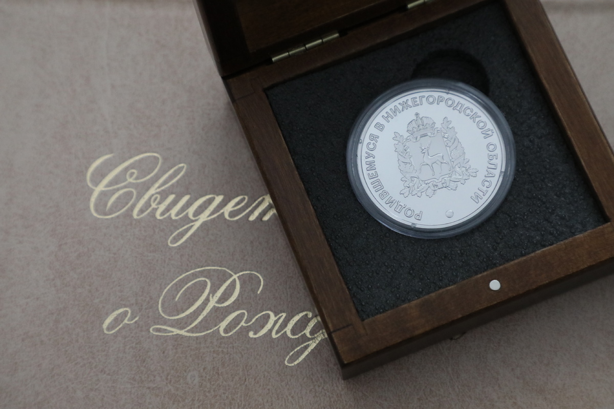 Заместитель губернатора вручил маме девочки свидетельство о рождении ребенка и памятную медаль «Рожденному в Нижегородской области».