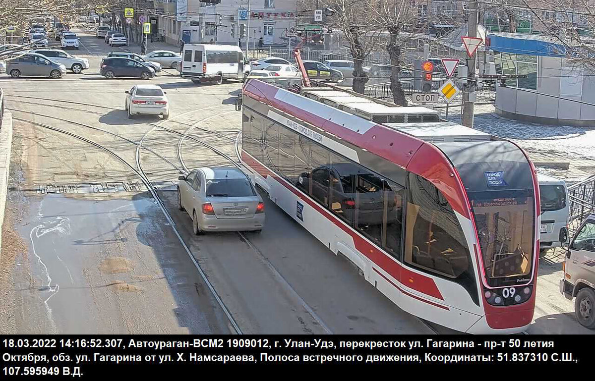 Госавтоинспекция Бурятии напоминает водителям о соблюдении ПДД при пересечении трамвайных путей. Согласно пункта 9.6 ПДД РФ разрешается движение по трамвайным путям попутного направления, расположенным слева на одном уровне с проезжей частью, когда заняты все полосы данного направления, а также при объезде, повороте налево или развороте с учетом пункта 8.5 Правил. При этом не должно создаваться помех трамваю. Выезжать на трамвайные пути встречного направления запрещается. Если перед перекрестком установлены дорожные знаки 5.15.1 или 5.15.2, движение по трамвайным путям через перекресток запрещается. Данное нарушение фиксируется стационарным комплексом ЦАФАП ГИБДД, установленным на пересечении улицы Гагарина и проспект 50 лет Октября (Элеватор). За выезд в нарушение ПДД на полосу, предназначенную для встречного движения, либо на трамвайные пути встречного направления, по ч. 4 статьи 12.15 КРФ об АП предусмотрена административная ответственность в виде штрафа в размере пяти тысяч рублей