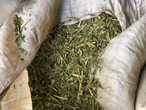 Следующим этапом является грубое измельчение веточек и листочков, и пересыпание в мешки.