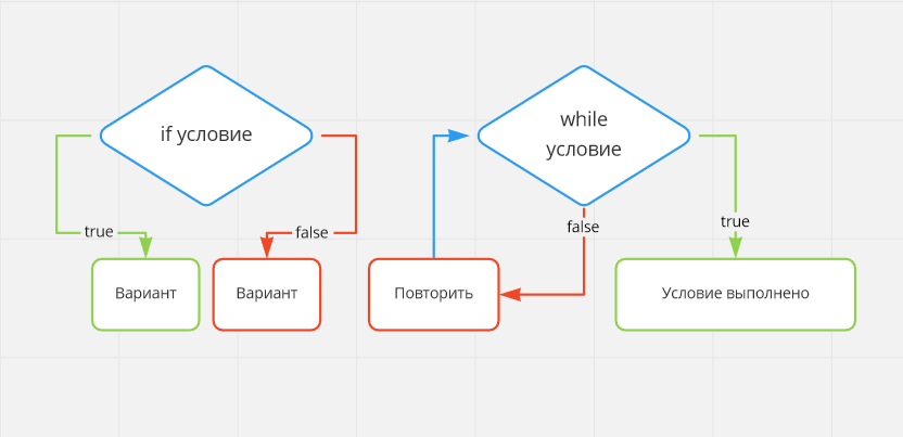 Весь код в теле функции, идет последовательно в верху вниз. Мы можем создавать условия при котором код будет выполнятся или не выполнятся, или повторять выполнение до тех пор пока условие будет верным. Условия Существует Логический тип (Булевы тип) - он может находится только в двух состояниях либо `true` либо `false`. (true|false - можно представить как Правда|Лож, 1|0, Да|Нет, Выполнить|Не выполнять). Указав `true` или `false` - мы сразу можем сказать выполнится ли код. но указав условие, мы сможем узнать результат только тогда когда передадим переменным значение, результат которого будет типам `:bool`. Условие - это сравнение 2-х переменных, через оператор сравнения. Операторы Сравнения: а так же можно использовать несколько условий `условие && условие`. Все Операторы if, else (если, иначе) if - это выражения, который реализует выполнение кода при соблюдении условий. Условие должно иметь тип :bool, со значением true - будет выполнено. false - не будет выполнен. else - это выражения