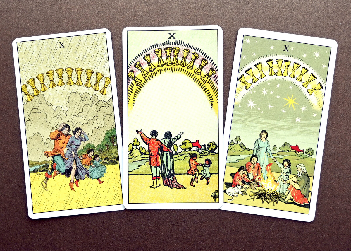 ВСЕМ МИР! С вами мастер Таро Маргарита Авилова. Давайте разложим карты на вопрос, что же хочет вам сказать судьба прямо сейчас. Хотя, карта будет одна, просто разложена на трех колодах - момент до, момент настоящего, момент будущего. Итак... ВАША КАРТА - 10 КУБКОВ. Чтобы увидеть радугу, надо пережить грозу. Чтобы обрести счастье, нужно с достоинством встретить вызов судьбы, проявить силу и красоту своего характера. Поверьте, придет время - и вы отпразднуете свои достижения в окружении самых любимых и близких людей. Слушайте свое сердце. Оно не соврет. Вы на верном пути, все старания не напрасны. Не сдавайтесь. Вы увидите, что все было не зря. Все сложится в восхитительную историю вашей победы. Вы запомните это время, как время большого прорыва. Осталось немного, совсем чуть-чуть. И вы получите то, к чему стремились. Увидите, что все старания стоили того, что каждая пророненная слеза проросла цветком радости. Обернувшись назад, вы поймете, что шли не путем лишений и терзаний, а