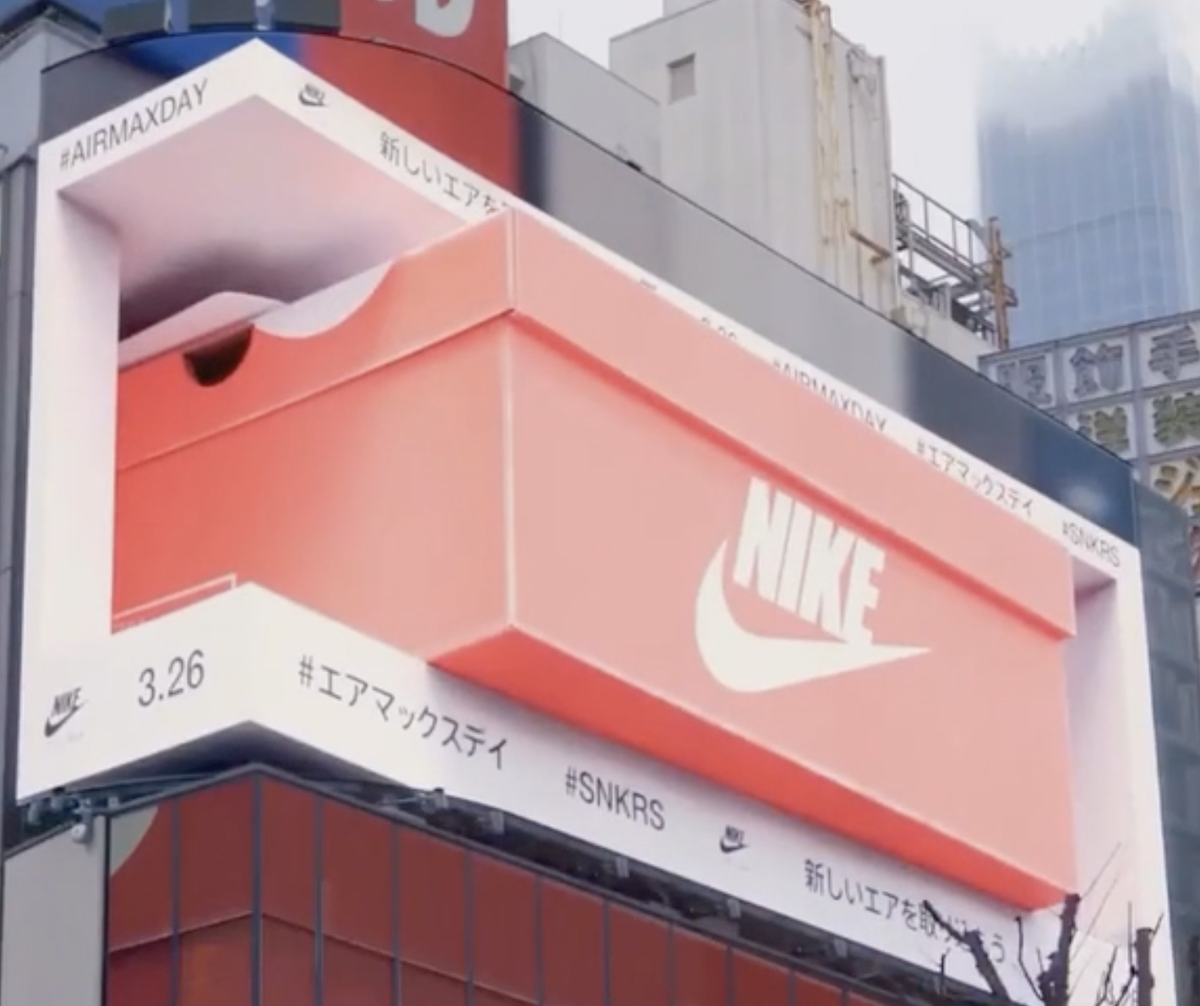 Трехмерная реклама приурочена ко дню кроссовок Air Max — 26 марта.