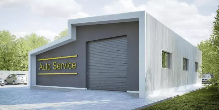 Наиболее популярный формат здания для малого бизнеса — быстровозводимые здания, оборудованные сборным металлическим каркасом и обшивкой. При строительстве сезонных холодных помещений допускается обшивка из профлиста, для теплых всесезонных СТО — установка сэндвич-панелей с утеплением минеральной ватой.