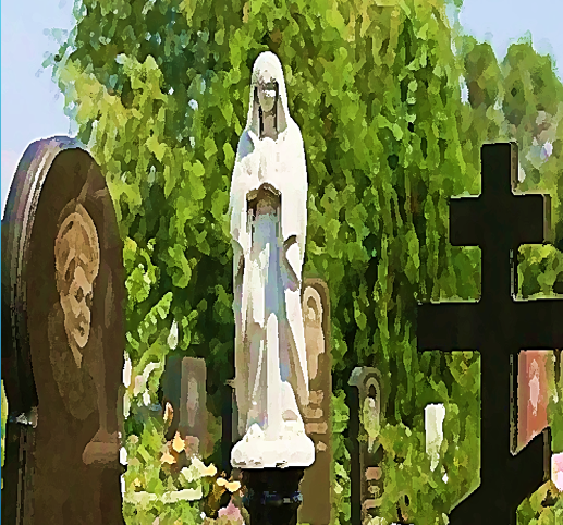 Повернула голову в сторону, откуда исходило воздействие, и тут же увидела из белого мрамора памятник, стоящий в нескольких метрах от меня. И вмиг осознала: «смотрят» именно оттуда. Подошла, глянула и поняла, что нашла эту маленькую принцессу. На гладкой поверхности было фото -изображение той самой девочки в светлом платьице с белым плюшевым мишкой в руках. И она внимательно смотрела на меня «живыми глазами». И в какую бы сторону я не перемещалась, её глаза пристально следили за мной.