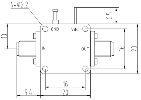 AT-LNA-0003-2801X – это малошумящий усилитель в форм-факторе модуля. Для питания модуля нужно всего одно напряжение питания, которое может варьироваться от 5 до 8 вольт без дополнительного охлаждения и может быть увеличено до 12 вольт, если организовать соответствующее охлаждение. Рекомендуется использовать радиатор, если во время работы температура модуля превышает 50°С. При напряжении питания 5 вольт средний ток потребления составляет 100 мА. Вход и выход сигнала организован через коннекторы SMA. По заказу этот модуль может быть изготовлен с расширенным диапазоном рабочих температур: от -40°C до +85°C и с расширенным динамическим диапазоном: мощность, при которой наступает компрессия в 1 дБ может быть увеличена до +36 дБм. Типовые технические характеристики:
