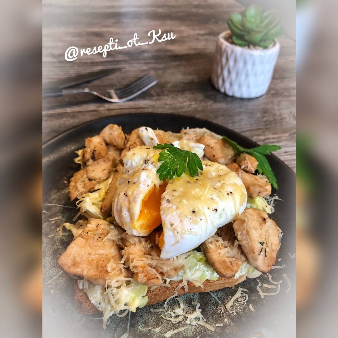 Вкусный и сытный завтрак! Обязательно попробуйте, Вам обязательно понравится! #меню #завтрак Ингредиенты: тостовый хлеб, куриного филе, Айсберга, Соус, Майонез , Горчица , Молотый Чеснок, Лимонный сок , Для жарки куриного филе:, Соевого соуса, Растительное масло для жарки курицы, Для варки яйцо пашот, Яйцо, Воды, Растительное масло , Соль , Для украшения, Помидоры черри, Сыр , Зелень Способ приготовления: Готовим яйцо пашот: Яйцо разбиваем в небольшую емкость, так будет удобнее опускать его в воду. В сотейнике кипятим воду, затем уменьшаем огонь до min, чтобы не было бурного кипения, добавляем соль и масло, ложкой размешиваем воду в сотейнике, чтобы образовался водоворот, и сразу опускаем яйцо, при этом ёмкость с яйцом держим, как можно ближе к воде. Варим пашот 2-3.5 минуты и вынимаем из воды шумовкой и выкладываем (вместе с шумовкой) на бумажное полотенце, чтобы стекла вода. Яйцо пашот готово. Подготавливаем следующие ингредиенты: куриное филе нарезаем соломкой, маринуем в соевом соу