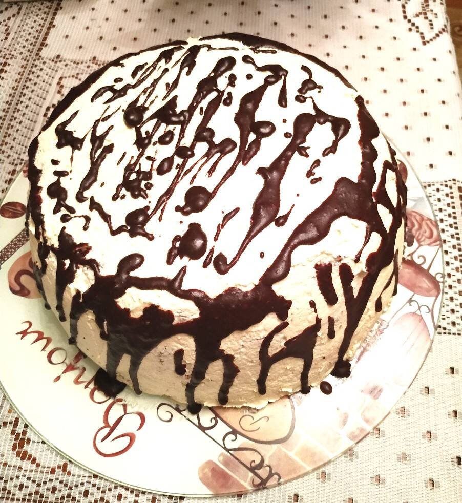 Вкуснее, чем покупать в магазине. Сам процесс, испечь и собрать торт это ВОЛШЕБСТВО. Ингредиенты: яиц, , 5 стакан сахар, мука, разрыхлитель, ч.л какао, молоко, масло растительное, гр орех грецкий, ананас консервированный, сметаны по 315 гр, гр шоколад Способ приготовления: 1.Делаю бисквит: 1.1.желтки отделить от белков, 1.2.белки взбить с 1стаканом сахара до устойчивых пиков. 1.3.Желтки также взбить с 1ст. л. сахара. 2.Соединить, перемешать венчиком, добавить: 2.1.ванилин 1 пакетик 2.2.муку 1 стакан 2.3.молоко 50мл 2.4.масло 50 мл 2.5.разрыхлитель, в последнем этапе перемешивания 1 пакетик 3.Противень смазать маслом. Или положить пекарскую бумагу. Одну часть теста выложить на противень, во вторую часть добавить 2ч.л какао, перемешать и выложить на вторую часть. 4.Выпекать при температуре 180градусов 20-25 мин.(для проверки вставить в центр зубочистку, должна остаться сухой) 5.Подготовить крем: 5.1.сметану смешать с небольшим количеством сахара (у меня 3 банки по 315гр., сахар по вкусу