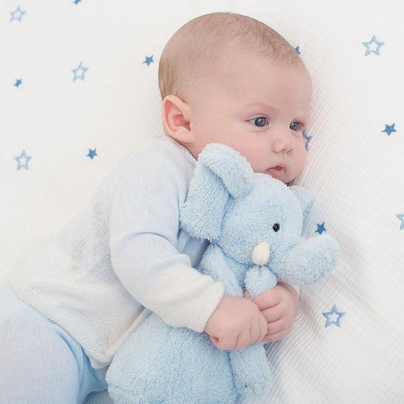 - Ребенок может следить за двигающимися предметами, даже поворачивая голову. Если вы покажете погремушку, зафиксировав взгляд малыша, а потом начнете ее медленно уводить в сторону, взгляд крохи последует за ней.