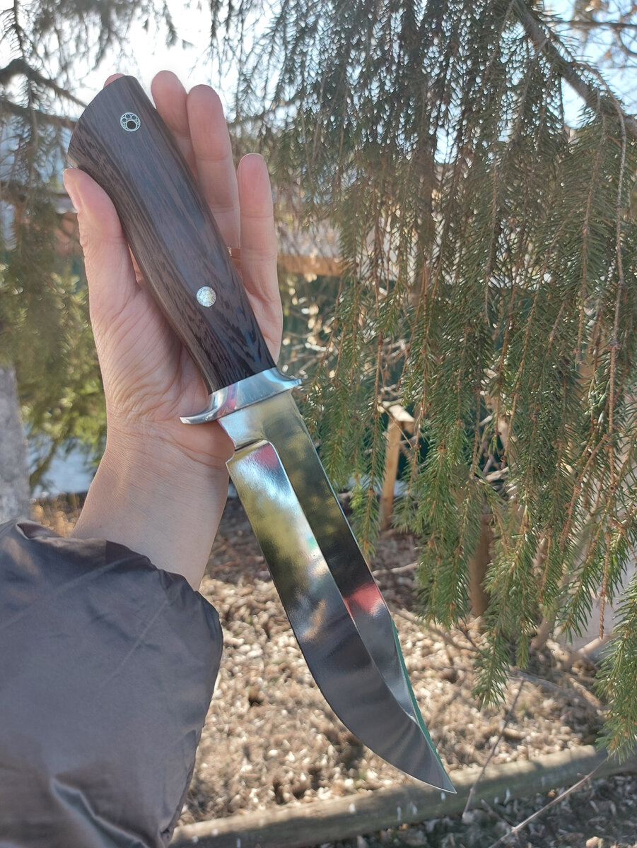 ✅Нож модели Бизон выполнен на заказ из стали D2 ✅Твёрдость 62- 63 ед. HRC ✅ Даже при активном использовании долго сохраняет остроту режущей кромки ✅Рукоять выполнена из дерева венге- прочная, тёплая, не разбухает от влаги и не растрескивается ✅Больстер- дюраль ✅Мозаичный и темлячный пины ✅Ножны из натуральной телячьей кожи с подвесом в комплекте. ✅Длина клинка 188мм ✅Ширина клинка 40мм ✅Толщина обуха 2,4мм ✅Длина рукояти 130мм 📲📲Связаться с нами можно в Viber или WhatsApp по номеру 8️⃣9️⃣2️⃣0️⃣0️⃣1️⃣0️⃣5️⃣9️⃣9️⃣3️⃣