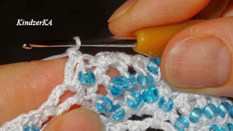 Как провязать бисер в столбике с накидом с лицевой стороны
