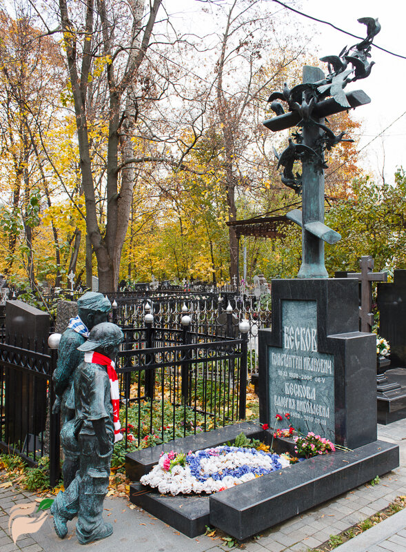 Если вы пройдетесь по столичным кладбищам, то удивитесь обилию красивых скульптур. Скорбные изваяния украшают могилы и словно оплакивают усопшего вместе с его родственниками и друзьями. Не менее необычны и надписи на надгробных памятниках. В них выражено сожаление об утрате, олицетворена любовь близких и родных. Чувство удивления вызывают и надгробия с неприметными табличками. На них значится некая комбинация символов. Эта надпись на надгробном памятнике – особенная. Она обозначает код, ведущий на сайт со страницей Памяти. Желающие используют доступ и знакомятся с биографией умершего человека, видят его снимки, слышат голос и узнают о добрых делах, которые он совершил при жизни. Такие надписи – ценность. Они хранят память о покойном вечно. Ну, а пока давайте мы поговорим о самых красивых скульптурах на кладбищах Москвы. Памятник Константину Бескову Надгробная композиция установлена на Ваганьковском кладбище. Она представляет собой фигуры двух мальчиков-подростков. Создается впечатлен