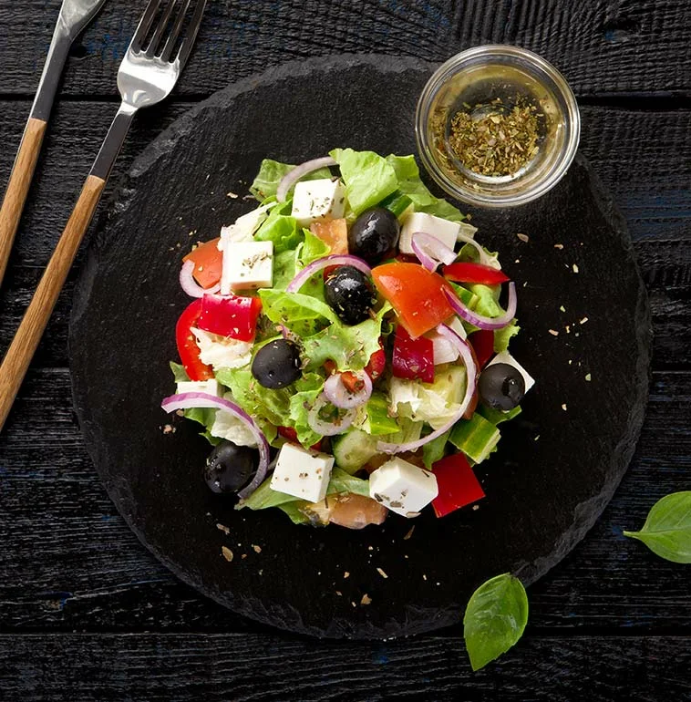 - Чеснок 1 зубчик Приготовление: 1. Смешайте оливковое масло, лимонный сок, измельченный чеснок, соль, перец и орегано. Хорошо перемешайте 2. В большую миску выложите листья салата, нарезанные небольшими кусочками помидор, огурец и болгарский перец, нарезанный тонкими кольцами красный лук, нарезанную кубиками фету и маслины 3. Перед подачей полейте заправкой, аккуратно перемешайте Приятного аппетита! #греческий салат #греческий салат рецепт #рецепт греческого салата #салат греческий #салаты рецепты #салат #салат на праздник