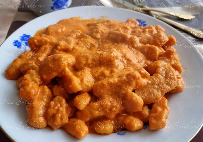 Тыквенные ньокки в сливочно - томатном соусе