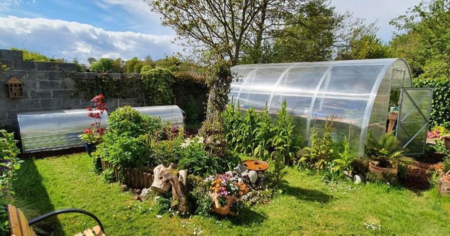 ❹ Функции прохода. Расстояние между теплицами можно использовать для небольшой грядки. Маленький проход – бесполезный. Здесь неудобно вскапывать или нельзя что-то посадить. Если оставлять пространство, то его можно использовать. Между теплицами можно оформить небольшую грядку и тропинку.
