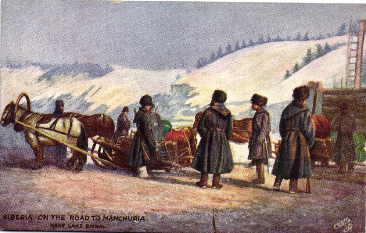 Открытка из серии WIDE-WIDE-WORLD 1908/1909 г. Текст на обороте: В разгар Русско-Японской войны все пехотинцы проезжающие через Байкал зимой, должны сойти с поезда и переходить озеро пешком. На картинке показана группа готовящаяся к старту и их багаж на лыжах (извиняемся за недостаточно литературный перевод). Изображение же на картинке отсылает либо к войне 1812 года, либо к роману "Михаил Строгов", для сравнения представляем более исторически достоверную картину Фредерика де Ханена "Российские войска двигаются к корейско-маньчжурской границе". #иркутск #байкал #русско-японская война #старые открытки #клюква #история сибири
