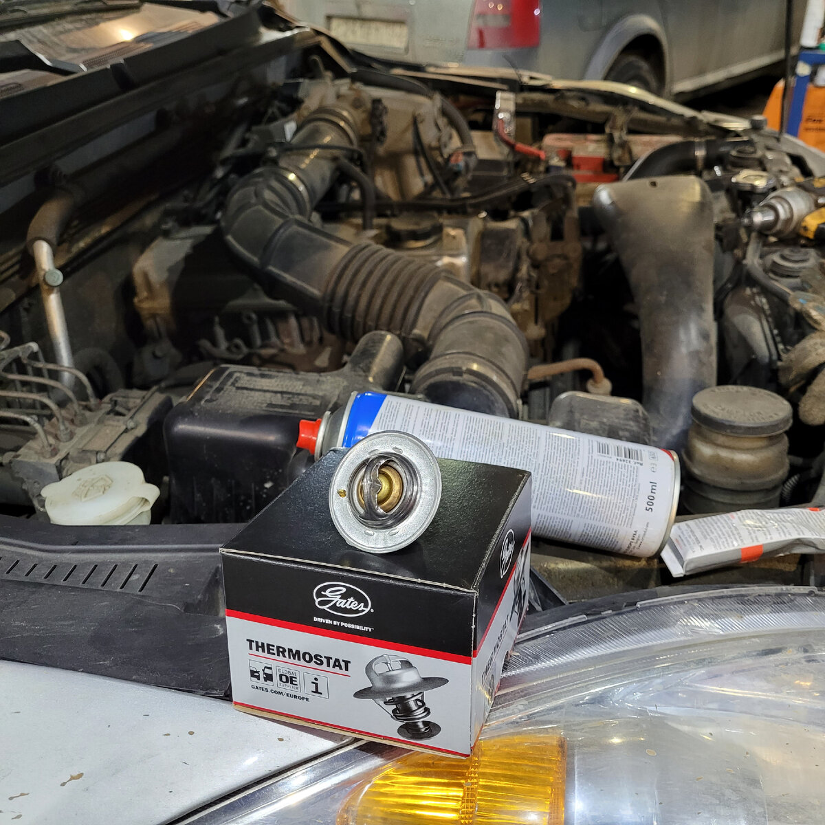 Рубрика Лехин Great Wall Hover H5 Вот и пришло время заменить мне родной термостат который прошел с автомобилем 103 000 тысячи км. На мой взгляд результат достойны. Решил я его заменить так, как он начал клинить и находился в открытом положении следовательно всегда работал большой круг системы охлаждения. В пробках температурный режим вел себя как положено, а вот при движении автомобиль сильно охлаждался и в салоне становилось не комфортно. Хорошо, что он заклинил в открытом положении, если бы он заклинил в закрытом положении то двигатель начал бы сильно греться и это могло привести к множеству проблем, например к прогару прокладки ГБЦ, чего все владельцы этих автомобилях сильно бояться. Скорее всего родной термостат вышел из строя из-за того, что я не уследил за антифризом и за время работы он стал очень грязный (смотреть следующие фото). Выбрал я на замену Израильский термостат фирмы Gates. Эти термостаты мы поставили на большое количество автомобилей в нашем автосервисе и ни один н