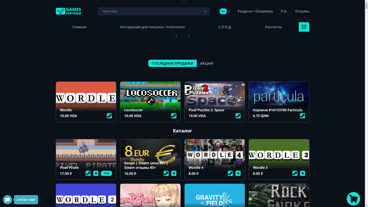 Заходим на сайт под названием "Cheap Keys" через который мы будем смотреть какие игры мы сможем купить. https://cheapkeys.ovh/table.php Выбираем игру и запоминаем название игры. Заходим на сайт "GamesForFarm" https://gamesforfarm.com/ Вставляем название игры в поисковик. Мне понравилась игра Overcast - Waide and the Werewolf Переходим на страницу игры. Нажимаем Купить Указываем свой E-mail на который в случае чего на прийдет письмо с ключом от игры. Соглашаемся с правилами магазина. Выбираем способ оплаты у меня это Web Money Оплачиваем. После оплаты у нас будет кнопка "вернутся на сайт продавца" Там вам нужно будет указать E-mail который вы указывали ранее. Потом у вас перекинет туда где вы сможете забрать сво