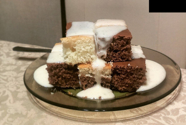 ИНГРЕДИЕНТЫ ПОРЦИИ 6 Манная крупа 2 стакана Кефир 1%-ый 1 стакан Сметана 15%-ная 1 стакан Пшеничная мука 1 стакан Сахар 1,5 стаканов Куриное яйцо 3 штуки Сода 1,5 чайных ложек Уксус 1 чайная ложка 1.Смешать 2 стакана крупы манной, 1 стакан кефира, 1 стакан сметаны и оставить настоятся не меньше часа (я оставляю на 2 часа). 2.После того, как настоится основная масса отдельно взбить 3 яйца и 1,5 стакана сахара. 3.Все смешать и добавить 1 стакан муки, 1,5 чайные ложки соды погасить 1 чайной ложкой уксуса и вмешать в тесто. Форму смазать растительным маслом и обсыпать манной крупой (чтобы не прилип манник). 4.Выпекать при 200 градусах до готовности. По вкусу можно добавить ваниль, корицу, какао, сухофрукты, орехи. Понравился рецепт — поделитесь им с друзьями в социальных сетях! Готовьте вместе с «Едой»!