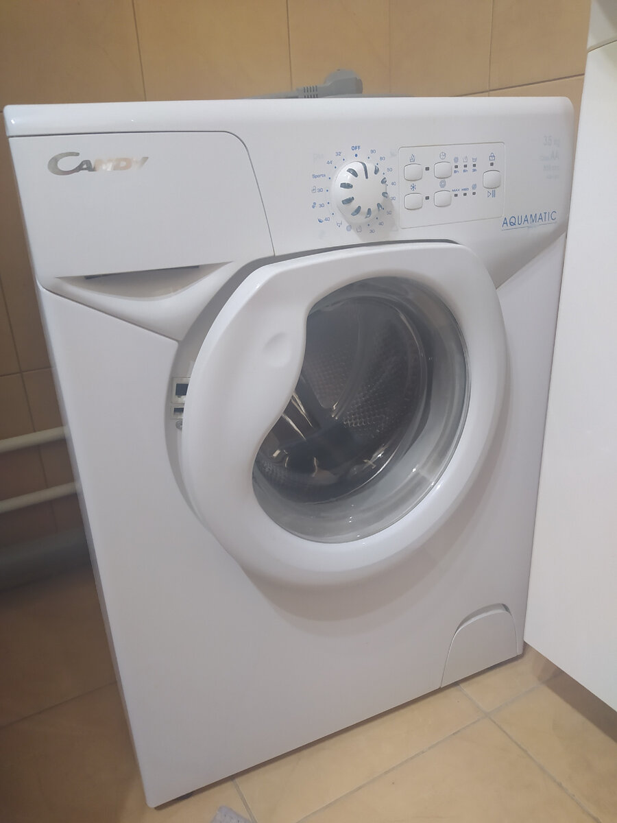 Вчера я писал статью про свой холодильник и по просмотрам видно, что вам эта статья понравилась. И поэтому я решил написать про еще одну немаловажную бытовую технику, а именно про стиральную машину Candy Aquamatic 80 F. Это итальянская компания, которая производит кроме стиральных машин еще и другую бытовую технику. О качестве их продукции ничего не могу сказать, так как другой техники от этой компании у меня нет, ну а про стиральную машину сейчас я вам расскажу поподробнее, все минусы и плюсы. Итак, стиралка стандартного белого цвета, довольно компактных размеров, но при этом имеет фронтальную загрузку с объемом сухого белья 3,5 кг, этого в принципе достаточного, если ты живешь один или у вас небольшая семья. Ножки стиральной машины регулируются, это позволяет установить машину по уровню, и она не будет прыгать по всей ванной комнате во время стирки. Контейнер для загрузки моющих средств разделен на два: первый это для обычного порошка, второй для жидких средств. Еще этот контейнер сн