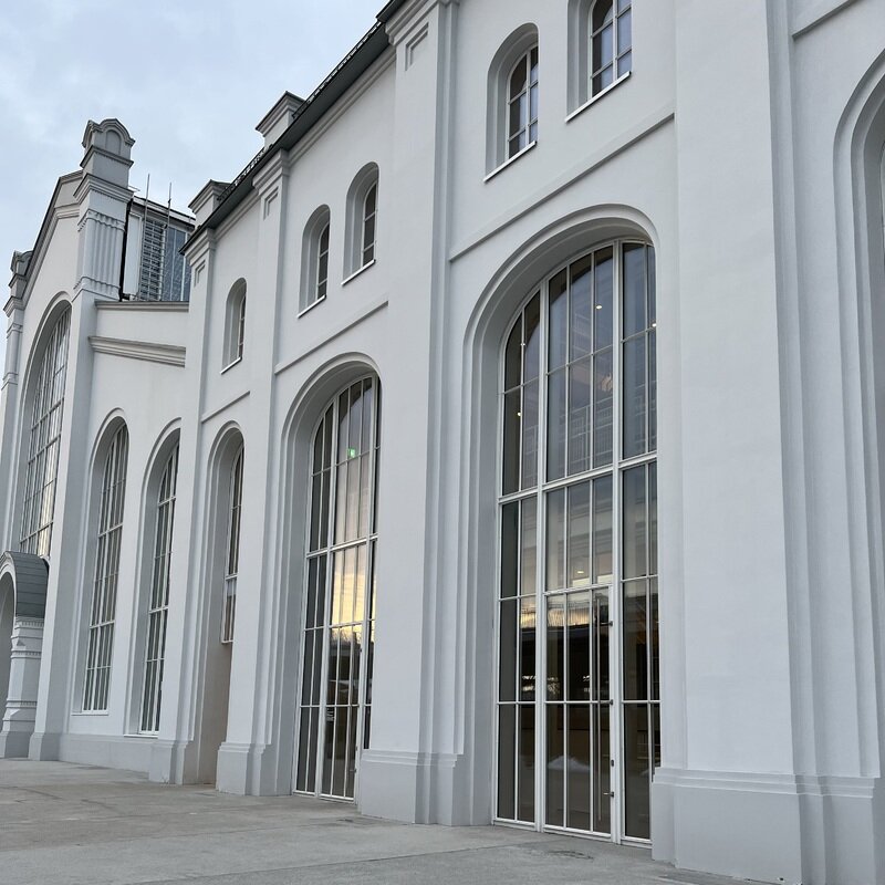 Внизу «шефский» стол, кухонная плита с винными шкафами и две длинные столешницы на компанию. Выше главный зал для трапезы: простой, базово-белый, без «культурных радостей». Сбоку лестница на следующий уровень с баром и проходом в основное помещение дома культуры (куда на момент визита без QR-кода было не попасть). Потом балкон с посадочными местами и на самом верху отсек для более массовых мероприятий. Оформление везде индустриальное, минималистическое и без всякого уюта. Сидишь, смотришь, а ощущение такое, словно попал в столовую из советского «светлого будущего».