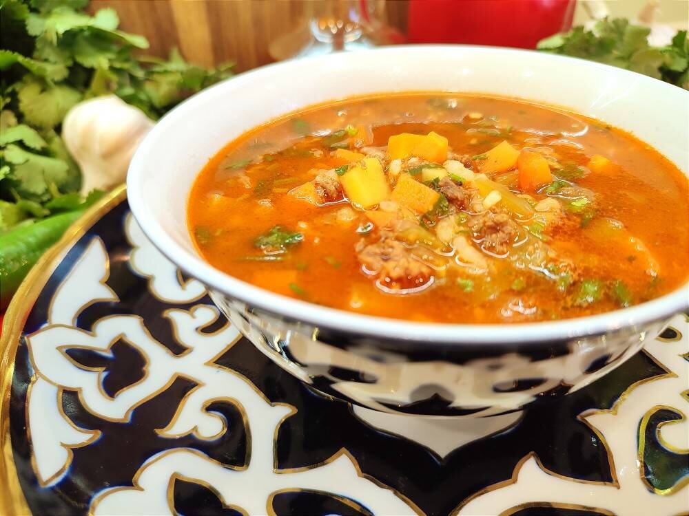 Потрясающий суп! Густой, насыщенный, пряный, ароматный и питательный!! Иногда такой суп называют жидким пловом 😊 из-за его консистенции, но всё же это суп!! #Мастава #МаставаСговядиной #ГустойСуп #МаставаСфаршем Ингредиенты: говядины/баранины, риса, морковь, луковица, сладкий перец, острый перец (по желанию), картофеля, чеснока, растительного масла, томатной пасты, кинзы/петрушки, чёрного перца, зиры, кориандра, джамбула (чабер), Соль Способ приготовления: У меня сегодня говяжий фарш, если использовать мясо, нарезанное кубиком, возможно, понадобится чуть больше времени для приготовления этого супа. В кастрюлю (или казан) наливаем масло, выкладываем нарезанный лук. Всё овощи будем резать небольшим кубиком. Когда лук станет прозрачным, выкладываем фарш, обжарим, периодически помешивая. Затем добавляем морковь, перец, слегка обжариваем, вводим томатную пасту, ещё немного обжарим, добавим специи и вольем воду (у меня кастрюля 4 л). Когда вода закипит, отправляем в кастрюлю картофель. Вари