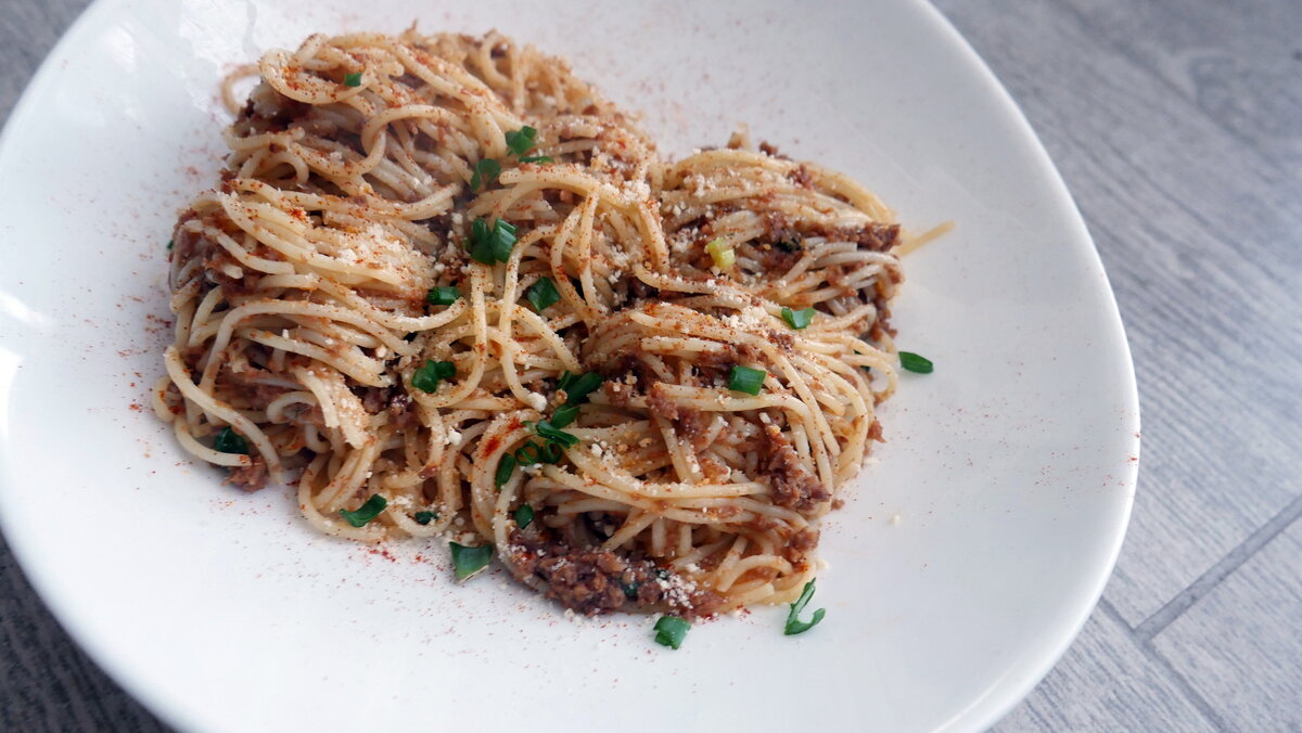 Доброго вам дня, дорогие читатели! В комментариях под недавним постом зашла речь о вчерашней еде. Я не считаю приемлемым выбрасывать какие-то продукты, поэтому вопрос или доедания недоеденного вчера или переработки даже не возникает – все идет в дело. У вас же тоже наверняка возникают ситуации, когда наутро остается, например, шашлык. Реанимировать его не удастся. Просто не существует способов восстановить шашлык, когда он после приготовления пролежал где-то там ночь. Речь не только о шашлыке. Накануне варил бульон из говяжьей грудинки, и осталось много вареного мяса (его у нас никто не ест). И из шашлыка, и из грудинки можно сделать другие – не менее вкусные блюда. Как, например, такие макароны. Все происходит очень просто и быстро, если у вас есть мясорубка. КАК ГОТОВИТЬ: И ВОТ ЗДЕСЬ НАЧИНАЕТСЯ САМОЕ ИНТЕРЕСНОЕ Теперь мясо надо немного потушить. Фокус в том, что сколько бы воды вы ни добавили – оно будет вбирать ее в себя всю. Потому что вареное мясо и мясо в остывшем шашлыке – сухо