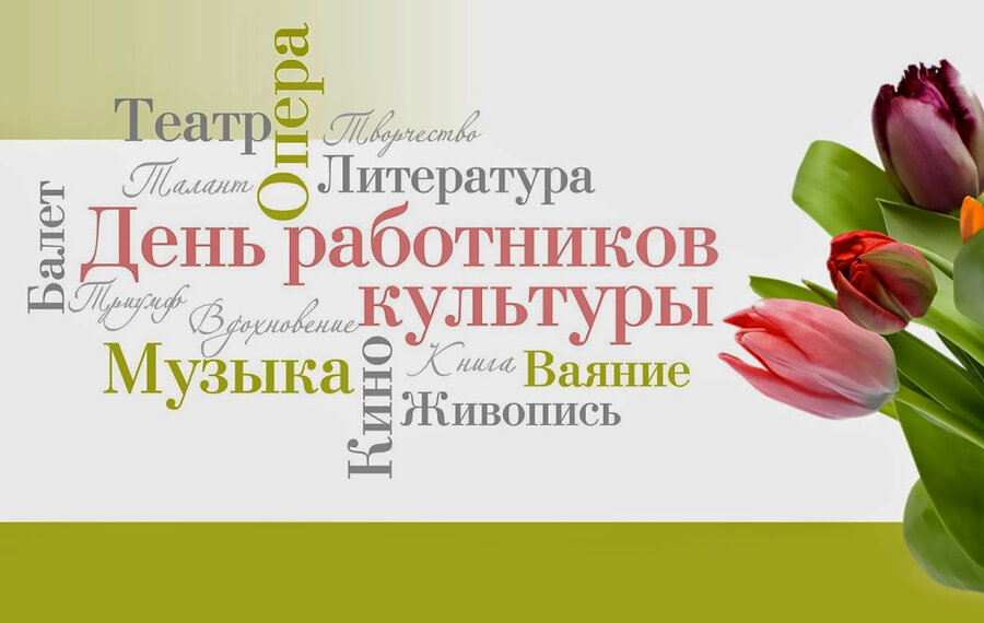 25 марта День работника культуры России День работника культуры отмечается в России ежегодно 25 марта. Этот профессиональный праздник деятелей культуры и искусства, людей творческих профессий, а также хранителей и популяризаторов культурного наследия установлен Указом Президента РФ №1111 от 27 августа 2007 года. О необходимости учреждения такого профессионального праздника весной 2007 года говорил Александр Соколов, занимавший тогда пост министра культуры РФ. Он пояснил, что мартовская дата была выбрана в связи с тем, что многие регионы отмечают собственный день работника культуры, также министр обратил внимание, что дату федерального Дня работника культуры необходимо «развести с другими профессиональными праздниками». Поздравляю с днем работника культуры. В этот прекрасный день хочу пожелать творческих успехов, осуществления всех планов и задумок, вдохновения и радости. Пусть Ваш труд несет только позитив и положительные эмоции для всех людей!