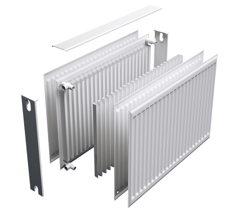 Это позволяет быстрее нагреть комнату, но содействует большему передвижению пыли. Конструктивно такие радиаторы могут иметь одну панель и один ряд оребрения, по две единицы каждого элемента или по три, что обозначается типом 11, 22 или 33. Встречаются иные комбинации этой системы: 10, 20, 21, 30, 31 или 32. Чем больше количество панелей с горячим теплоносителем, тем лучше теплообмен. Увеличение оребрения повышает силу конвекции горячего воздуха.