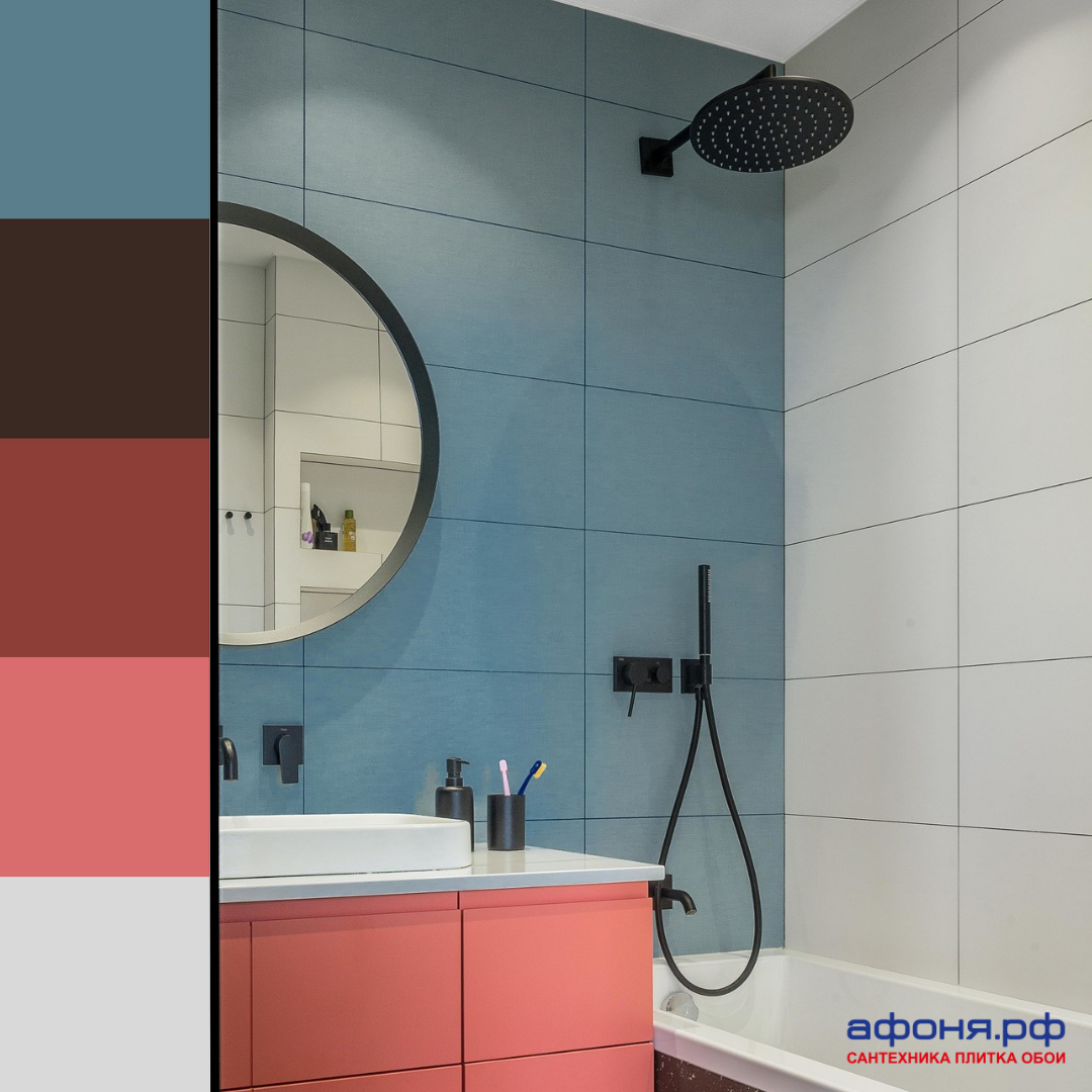 Выберите для ванной комнаты 2-3 цвета — базовый и дополнительные.
