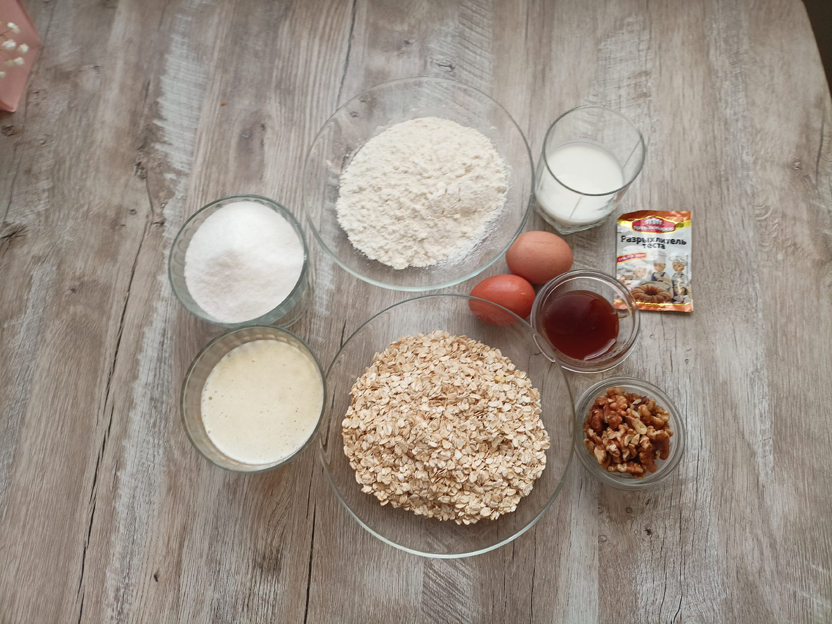 Ингредиенты: Хлопья Геркулес - 320гр Мука - 350гр Сахар- 400гр Растопленное сливочное масло- 250гр Мед - 2ч ложки Кефир- 8ст. ложек Разрыхлитель - 1 чайную ложку Соль- 1/2 чайной ложки Яйца- 2шт. Способ приготовления: 1. К растопленному слив. маслу добавляем 2ст. ложки меда, 2 яйца, 8 ст. ложек кефира, 1 ч.л разрыхлителя Хорошо перемешиваем 2. В блендере перемалывает овсяные хлопья 3. Смешиваем все сухие ингредиенты: хлопья, сахар, муку и соль 4. Смешиваем жидкие и сухие ингредиенты. Можно добавить грец.орехов 5. Охлаждаем тесто в морозильной камере 20 мин. 6. Выкладываем печенье на противень, ставим в разогретую духовку 180° на 15мин.
