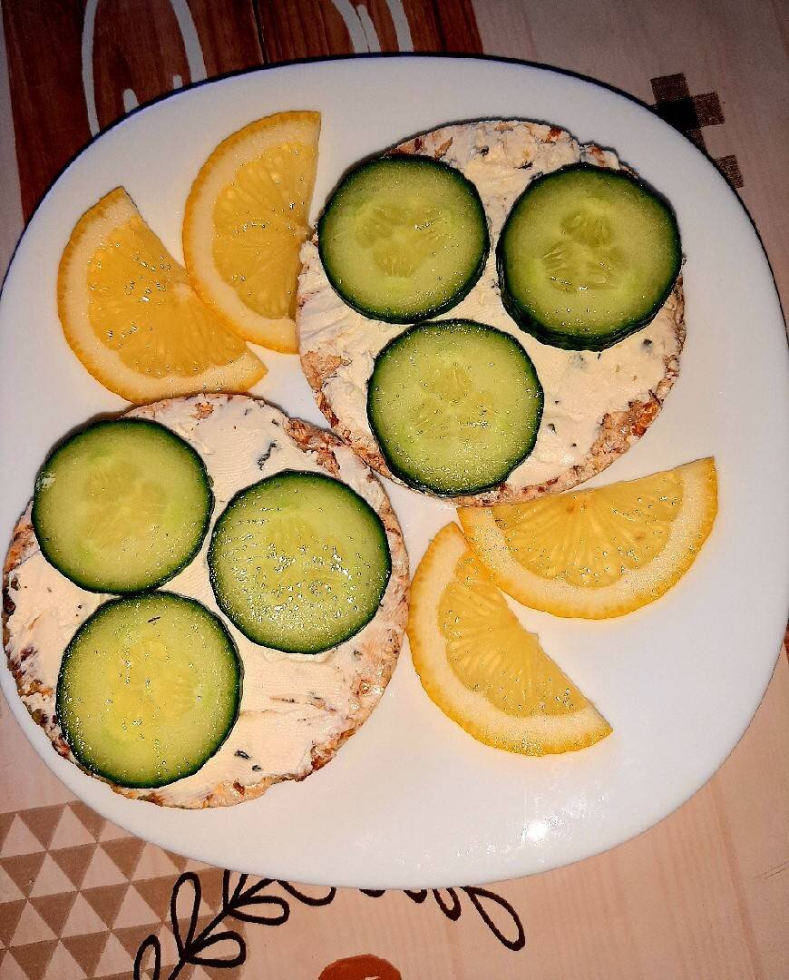 Очень лёгкий и полезный завтрак, особенно для тех, кто сейчас считает калории до лета🤭(это я про себя) При этом он ещё и вкусный😋 #пп #ппрецепты #завтрак #перекус Ингредиенты: Слайсы, Творожный сыр с зеленью, Огурец Способ приготовления: Ну собственно рецепта как такового и нет, так как все и так понятно. Но, я хочу сказать, что я иногда делаю творожный сыр сама, в домашних условиях. Для этого я замораживаю на ночь одну упаковочку кефира 2,5%. Утром выкладываю эту замороженную смесь на марлю на дуршлаг и оставляю на весь день, для того чтобы она разморозилась и стекла лишняя жидкость. И потом в неё можете добавлять что вам угодно - зелень, паприку или кадровые орешки, или кусочки фруктов. Соль, сахар - по вкусу. Приятного!😉