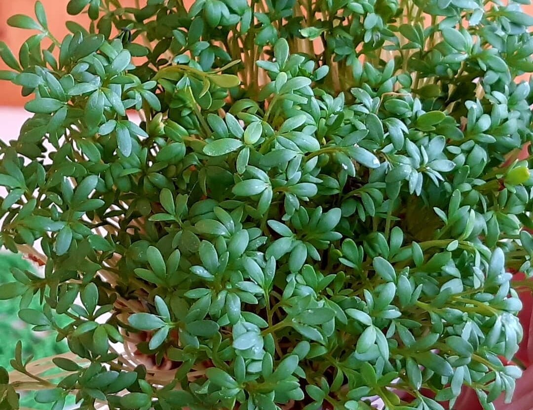 По возможности, где только могу, популяризирую это чудо-растение! Сама познакомилась с ним много лет назад, когда в магазине "Семена" купила несколько сортов салата, посеяла их все на даче и стала ждать... Вскоре среди "нормальных" кучерявых красивых листочков взошли и стали расти какие-то тонкие невзрачные зеленые "ниточки-тенёточки". Если бы я сажала не рядами, то приняла бы эти растения за хилый сорняк и избавилась бы от него без особых раздумий. А здесь вроде взошло то, что сажалось как салат... Попробовав на вкус, ощутила ярко выраженный горьковато-острый вкус с перечным послевкусием... Мне не понравилось жутко. Дала попробовать всем своим домочадцам и соседям по даче. Мнения разделились. Кто-то из мужчин сказал, что с холодцом - самое то будет! В помощь горчице. И, как оказалось, с холодцом действительно круто!!! Мне стало интересно почитать про кресс-салат в интернете. Что за чудо такое? И, чем больше я узнавала, тем глубже становилось мое уважение к маленькому, но