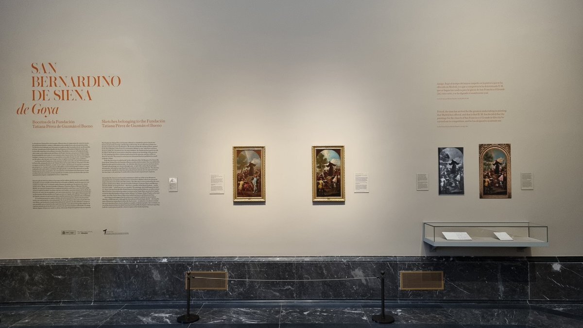 Первая работа — «Проповедь святого Бернардина Сиенского». В 1784 году Гойи на основе эскиза написал картину маслом. На ней изображена толпа, где можно увидеть и самого художника. Он будто оставляет на полотне автограф. Бернардин Сиенский произносит проповедь на площади Сиены арагонскому королю Альфонсу V Великодушному. Картина хранится в Королевском соборе Святого Франциска Великого. Вторая работа — «Лежащая Венера».
