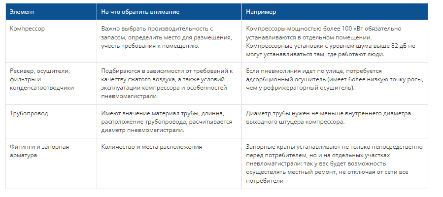 Нужно учесть еще большое количество нюансов: как расположить компрессорное оборудование, каким должен быть трубопровод (материал, диаметр трубы, длинна), как подвести к потребителю.