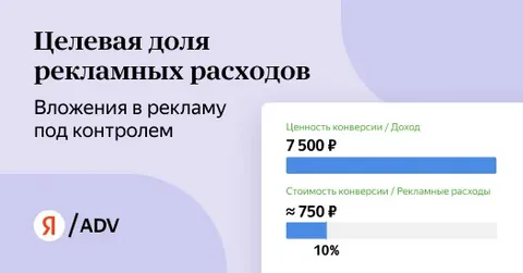 Этим летом в Директе появилась стратегия «Целевая доля рекламных расходов». Чем она отличается от других стратегий и почему о ней важно знать каждому рекламодателю — рассказываем за 3 секунды, 30 секунд и 3 минуты. 3 секунды Выберите процент от стоимости любого товара, и Яндекс найдет покупателя. Удобно, когда много товаров разной цены. 30 секунд Допустим, у вас интернет-магазин одежды с большим ассортиментом товаров. Вы запустили кампанию в Директе и указали в настройках, что готовы отдавать на рекламу 10% дохода. Если посетитель купит рубашку за 1000 ₽ и брюки за 2000 ₽, вы потратите на привлечение этого покупателя не больше 300 ₽ = (1000 + 2000) × 0,1 Преимущество стратегии в том, что вы всегда платите за рекламу не больше указанного процента от стоимости товара. 3 минуты Стратегия «Целевая доля рекламных расходов» помогает эффективнее управлять инвестициями в рекламу и выполнять четкие KPI. В первую очередь она подойдет: В обоих случаях вы указываете оптимальную для бизнеса долю ре