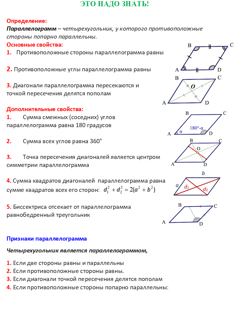 Готовимся к ОГЭ и ЕГЭ. Всё о параллелограмме.