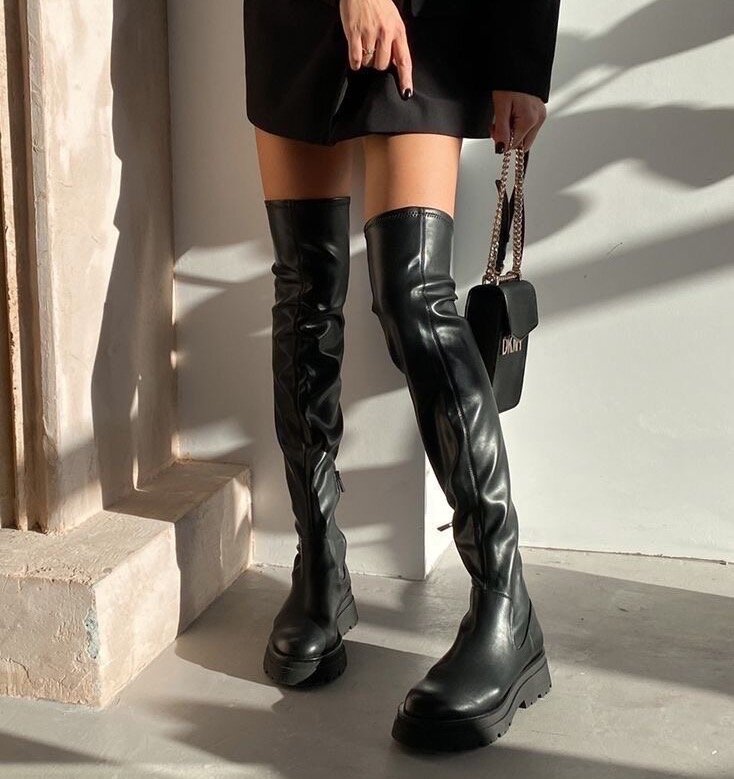 Ботфорты-один из самых модных вариантов обуви для прохладных сезонов. Они завоевали любовь девушек еще и потому, что подходят к изящным элегантным фасонам, а также эффектным моделям, шорт, юбочек и платьев в неформальном и уличном стиле. В этой статьей я покажу несколько вариантов образов с ботфортами. 1. С вязаной жилеткой и рубашкой Как известно, вязаные жилетки очень актуальны в этом сезоне, поэтому сочетание ботфорты+белая удлиненная рубашка+вязанная жилетка-это то, что стоит попробовать внедрить в свои повседневные образы. Можно по разному обыгрывать такую базу, например, выбрать вместо укороченного жилета-длинный, вместо обычных черных колготок(бежевые категорически не рекомендуется носить с ботфортами) отдать предпочтение черным с различными принтами и узорами. Немного аксессуаров-и ваш идеальный образ готов! 2. С пиджаком Отличным вариантом будет сочетание кроп-топ+ корткие шорты или мини-юбка+пидажак оверсайз. Также можно внедрить удлиненную рубашку, главное, чтобы была соблю